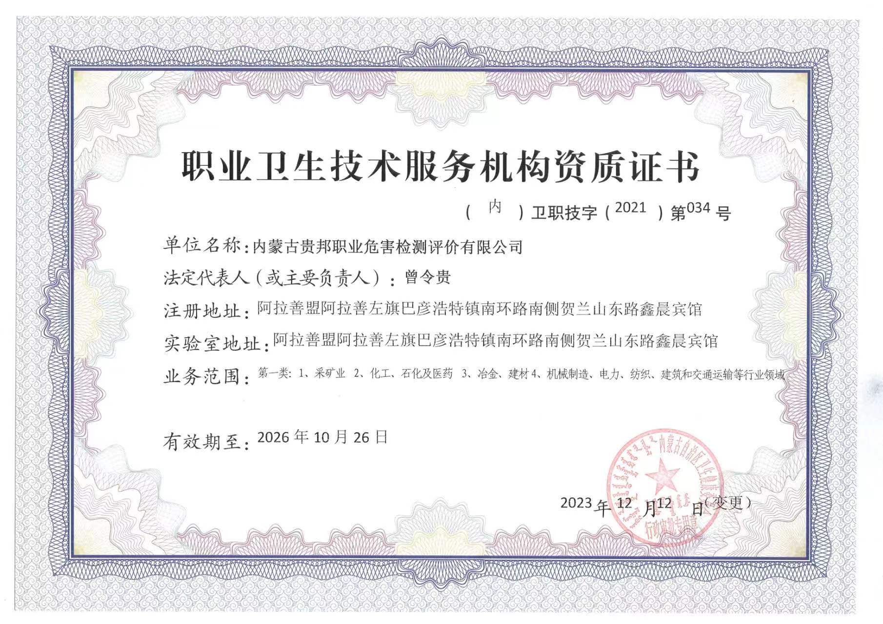 內(nèi)蒙古貴邦職業(yè)危害檢測評價有限公司(www.isunvzi.com)版權(quán)所有 地址:阿拉善盟阿拉善左旗賀蘭山東路加氣站南側(cè)鑫晨賓館一樓 24小時熱線:18947252199 蒙ICP備:蒙ICP備21006705號-1 公安備案號:50011802010212